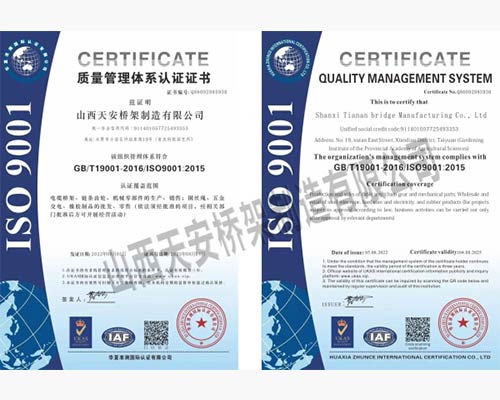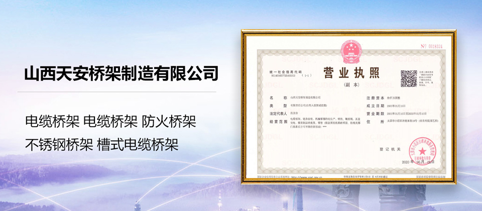 山西天安橋架制造有限公司是一家生產電纜橋架、母線槽的大型廠家,主要生產:槽式橋架、托盤式橋架、梯級式橋架、大跨距橋架、母線槽有空氣型、密集型、耐火型、鋁合金等以及通風管、可根據客戶要求定制各種型號各種規(guī)格,表面處理有熱鍍鋅、防火噴塑、防火漆、熱鍍鋅等,產品廣泛應用于石油、化工、治金、電力、紡織、通訊、高層建筑等各個領域。產品具有外形美觀,耐腐蝕性強,安裝靈活方便,品種齊全等特點。